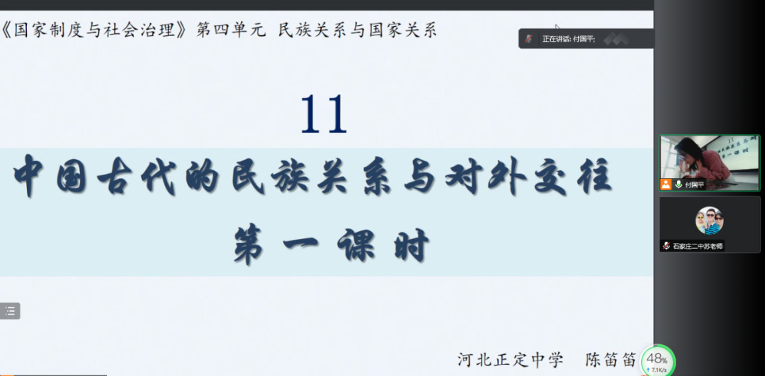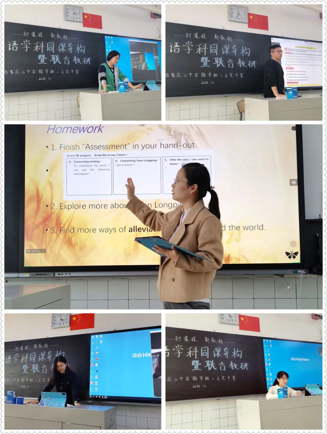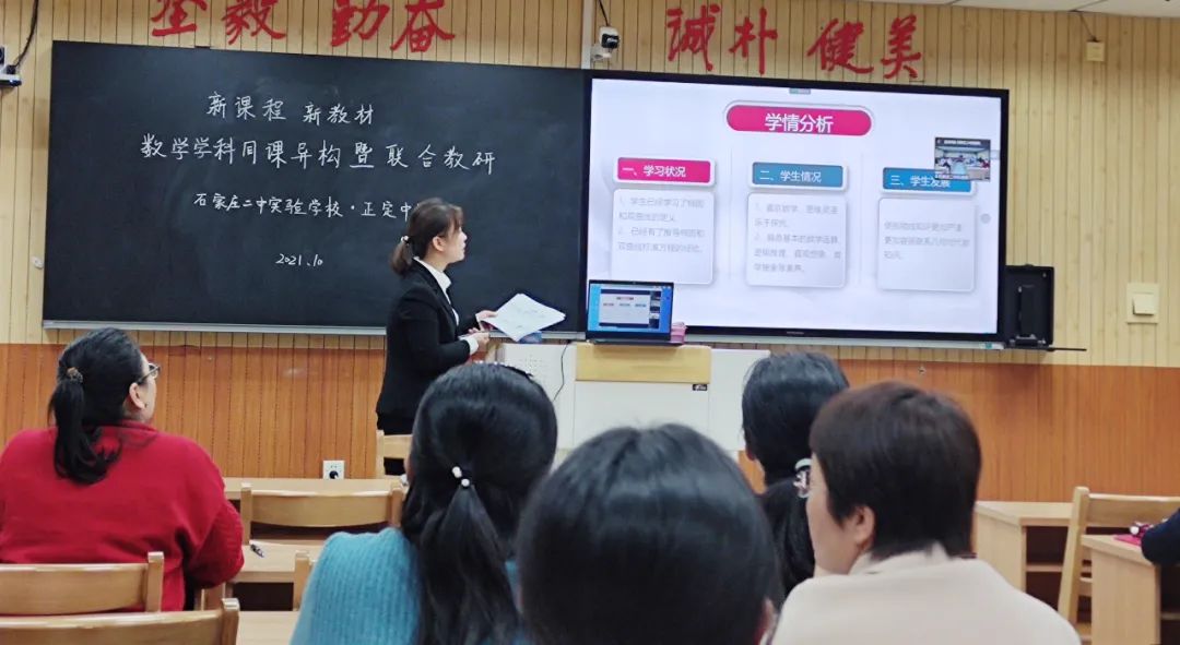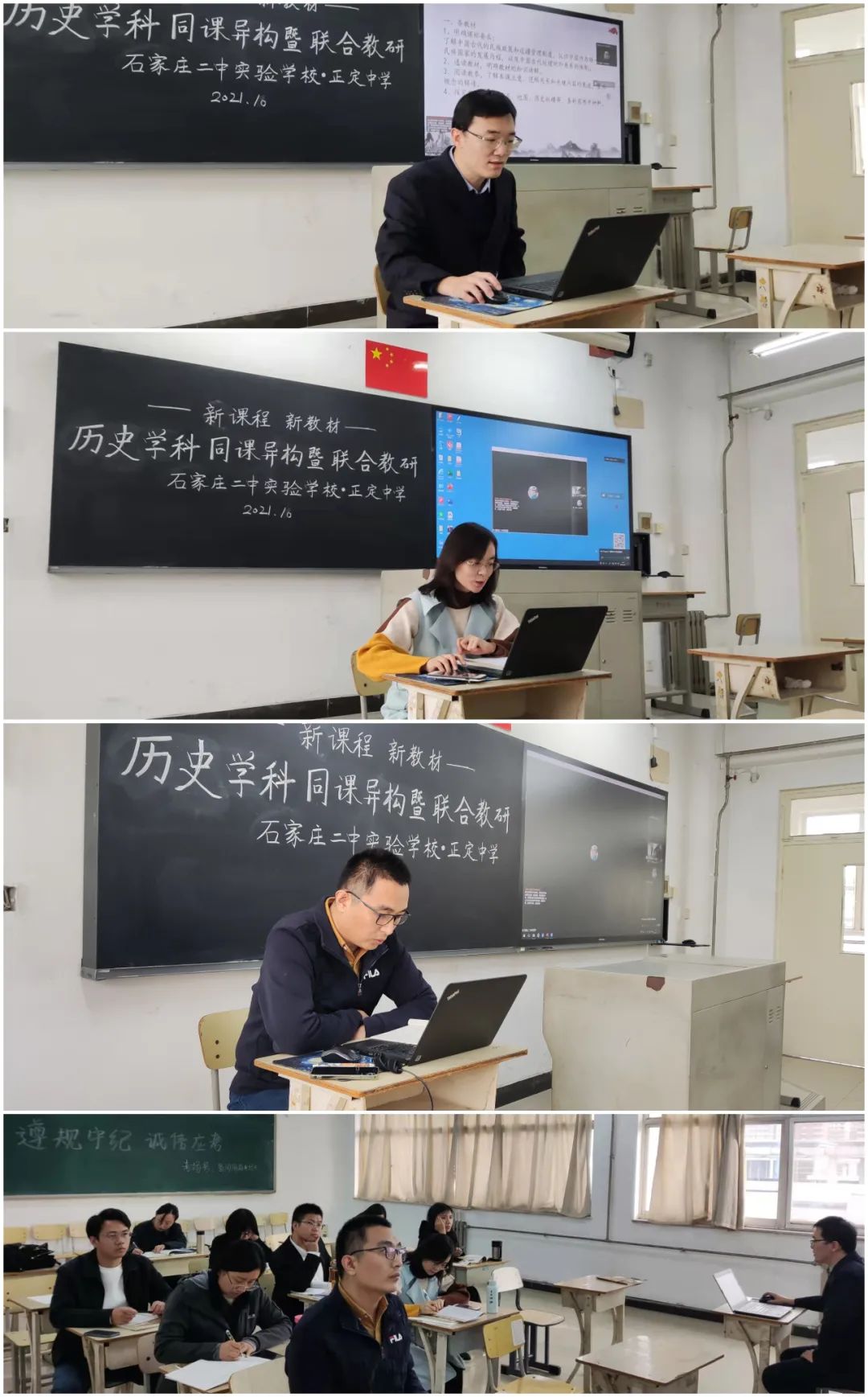 为了更好的给教师提供交流互动的平台,促进教师的专业化发展,推动教师自我反思、同伴互助、专业引领。2021年10月27日下午,我校与正定中学各学科进行了同课异构暨联合教研活动。活动中先由各学科教师进行观摩展示课,课后授课教师和指导教师进行说课和评课,各学科教研组长也就本学科教学中的经验、反思进行了深入的介绍与交流。由于疫情防控需要,说评课和教学研讨交流采取线上的方式进行。