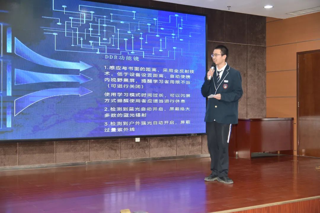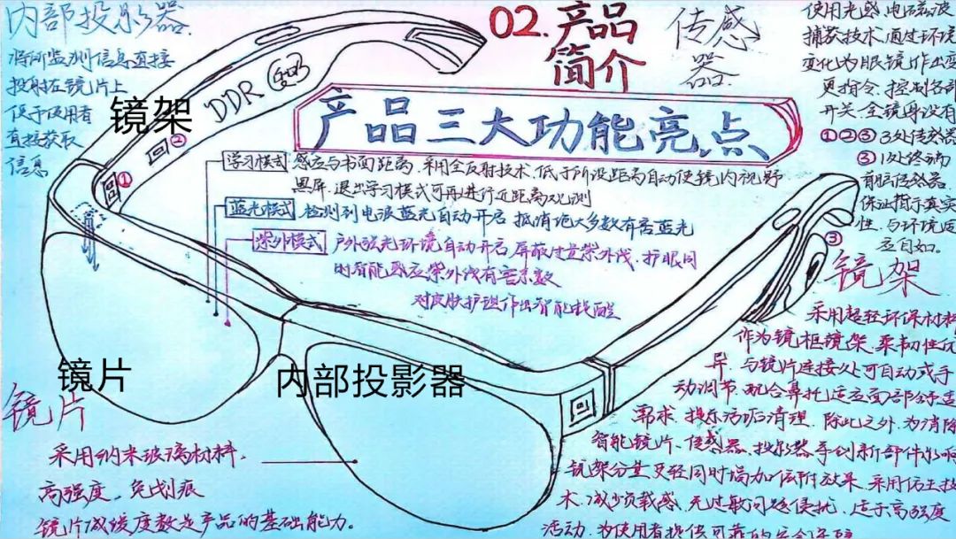 ——该项目推出的智能护目镜集成距离感应+蓝光/强光自适应屏蔽+学习提醒三重防护,搭载纳米玻璃镜片与超轻镜架,首创监测信息镜片直投技术,构建全场景视力防护系统。