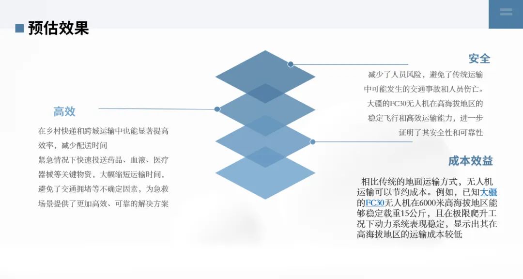 ——该项目通过自主研发轻量化智能无人机集群(适配山区复杂地形),通过政企联动的低空经济惠民工程,打造“最后一公里”智能配送生态圈,同步推进乡村振兴与民生保障。