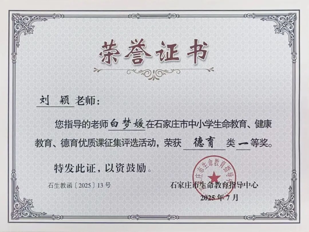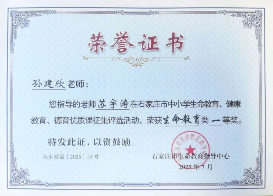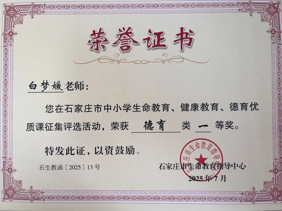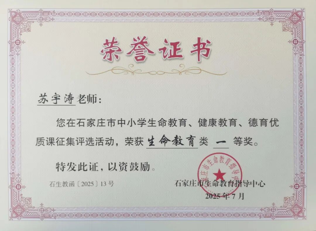 近期,石家庄市生命教育指导中心组织开展了2025全市中小学生命教育、德育优质课评选活动,我校优秀青年班主任苏宇涛老师参加了生命教育优质课评选活动,政治组优秀青年教师白梦媛参加了德育优质课评选,两位老师以他们较高的职业素养、优秀的专业功底分别获得两项比赛一等奖。在此,向获得优异成绩的老师以及他们的指导教师团队表示热烈祝贺! 白梦媛,中共党员,教学风格独特,工作认真负责,教育、教学成绩优异,所带班级积极向上且学习氛围浓厚。获河北省信息技术与教学融合课一等奖,青年教师素质大赛一等奖、全能奖,多次荣获“优秀班主任”“优秀指导教师”“教学能手奖”等荣誉,所带班级曾获“高考优胜班”等荣誉。 (指导教师)刘颖,中共党员,中学高级教师,石家庄市优秀教师,石家庄市骨干教师,石家庄二中实验学校政治教研组长,河北师范大学硕士生导师,所讲课例荣获“一师一优课一课一名师”部级优课,河北省基础教育精品课、河北省优质课一等奖等奖项。 苏宇涛,河北师范大学历史学硕士研究生毕业,从事历史教学与班主任工作多年。曾获石家庄市高中地方和校本课程优质课一等奖、市教科研工作先进个人、市评优课一等奖,基础教育精品课省级优课,主讲课程入选河北省“铸牢中华民族共同体意识”省级精品课。主持完成石家庄市“十四五”规划教师个人课题《基于传统文化视域下主题班会育人价值实践路径的探索》,积极探索德育实践新路径。 (指导教师)孙建欣,中共党员。石家庄二中实验学校专职心理教师,国家二级心理咨询师,中国心理学会注册心理师。河北省心理健康教育教师骨干人才库成员、河北省12355支持冬奥专项行动心理专家、河北省“冀青之星”典型人物、石家庄市心理健康特色校创建先进个人、石家庄市中小学心理健康教育志愿接力先进个人、石家庄市青春战疫生命关怀心理援助先进个人、石家庄市心理健康教育先进个人;河北省中小学心理健康教育优质课一等奖、石家庄市心理健康教育优质课一等奖、石家庄市首届青年教师素质赛一等奖等。